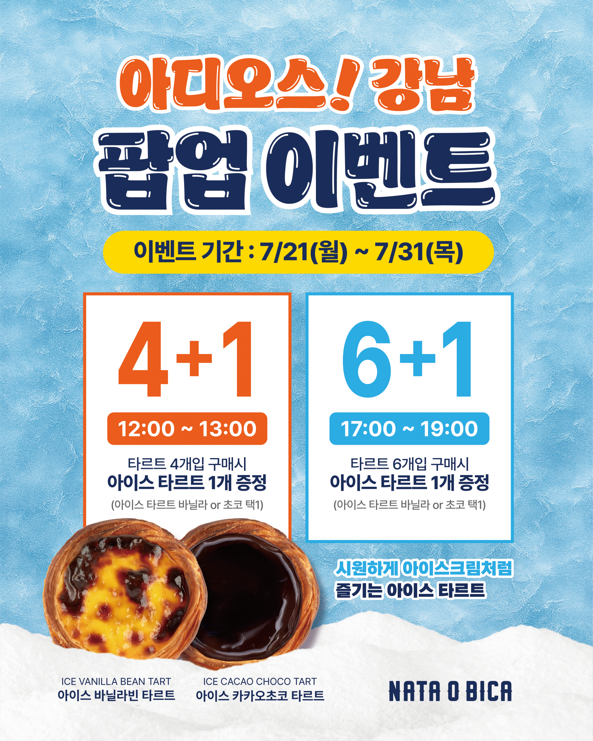 ☑️기간 : 7/21(월) ~ 7/31(목)☑️이벤트 내용▪️4+1 이벤트- 시간 : 12시 ~ 13시- 내용 : 타르트 4개입 구매시 아이스타르트 1개 증정